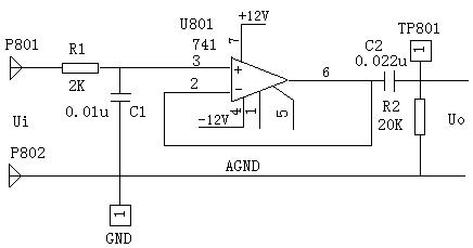 即在低频端,主要由R2、C2的高通特性起作用;在高频端,则由R1、C1的低通特性起作用;在中频段,C1相当于开路,C2相当于短路,它们都不起作用,输入信号Ui经运算放大器后送往输出端,由此形成其带通滤波特性。
